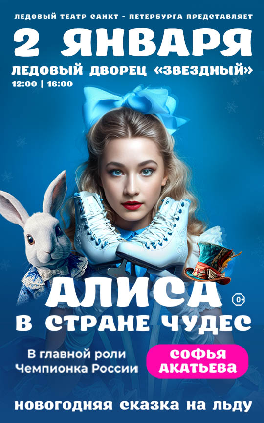 На льду вы увидите невероятные номера фигуристов, акробатические выступления, яркие костюмы, захватывающие танцы и удивительные спецэффекты. Шоу "Алиса в стране чудес" перенесет вас в мир фантазий, где реальность переплетается с волшебством,