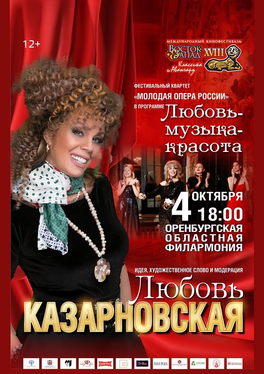 Звезда мировой оперы, доктор музыкальных наук, профессор, актриса Любовь Казарновская станет гостем XVIII Международного кинофестиваля «Восток&Запад.Классика и Авангард», который пройдёт в Оренбургской области с 3 по 9 октября. Она вошла в состав жюри масштабного кинофорума.
