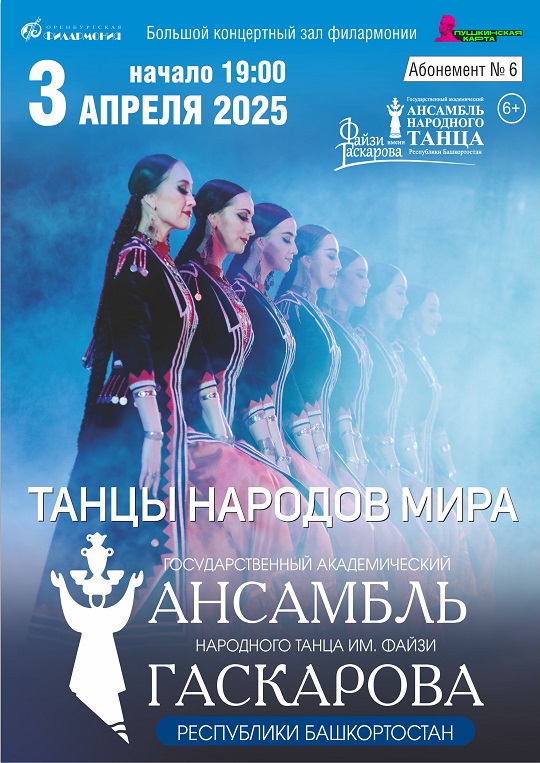 3 апреля в Большом концертном зале филармонии состоится концерт Государственного академического ансамбля народного танца им.Файзи Гаскарова "Танцы народов мира".