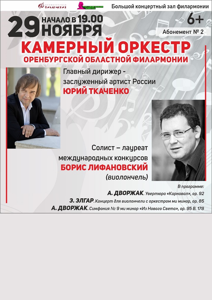 29 ноября в 19.00 в Большом концертном зале состоится концерт Камерного оркестра филармонии, солист – лауреат международных конкурсов Борис Лифановский (виолончель).