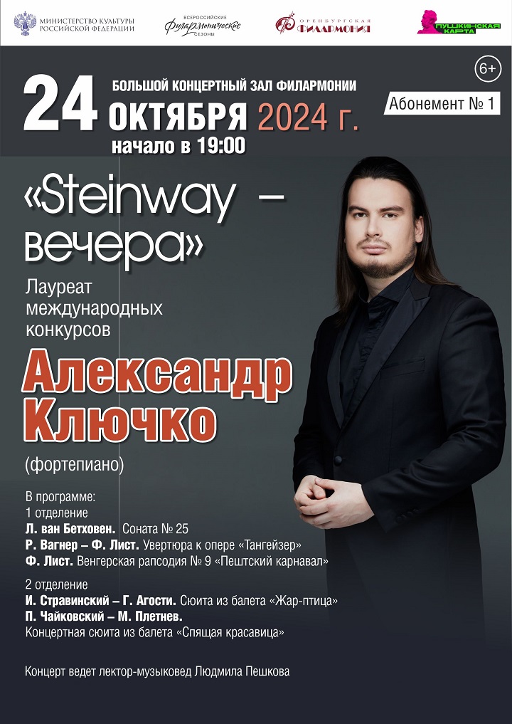 24 октября на сцене Большого концертного зала филармонии состоится концерт из абонемента № 1 "Stainway-вечера"Александра Ключко (фортепиано).